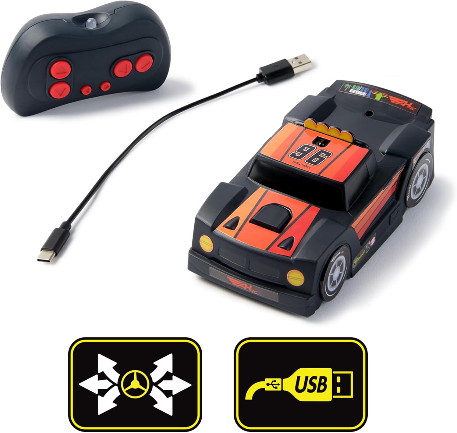 The sleek black design gives this racer a cool, modern look that feels just as fast as it drives. Tough enough for everyday play and light enough to stick to the walls, it’s built to handle bumps, drops, and wild indoor adventures. Parents will appreciate that it’s designed for indoor use, so kids can enjoy fast-paced excitement no matter the weather outside.